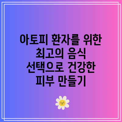 아토피 피부염은 많은 이들에게 고통을 주는 만성적인 피부 질환입니다. 이를 관리하기 위한 방법 중 하나가 바로 올바른 식습관입니다. 아토피 환자를 위한 최고의 음식 선택은 피부 건강에 큰 변화를 가져올 수 있습니다. 그렇다면 어떤 음식이 아토피 환자에게 가장 좋을까요?