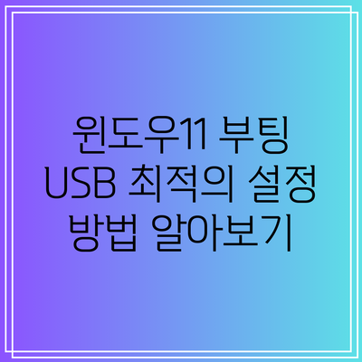 윈도우11 부팅 USB 최적화는 시간을 절약하고 설치 과정을 원활하게 만들어 줄 매우 중요한 과정이에요!