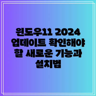 윈도우11 2024 업데이트를 통해 새로운 기능과 향상된 성능을 쉽게 경험할 수 있으니, 설치 방법을 잘 숙지해 두는 것이 중요해요!