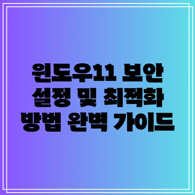 윈도우11 보안 설정 및 최적화 방법 완벽 가이드