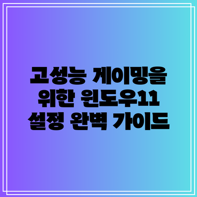 고성능 게이밍을 위한 윈도우11 설정 완벽 가이드