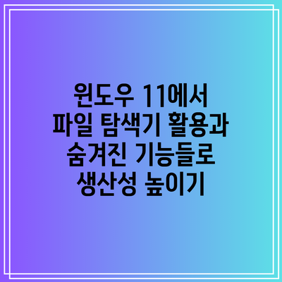 윈도우 11에서 파일 탐색기 활용과 숨겨진 기능들로 생산성 높이기