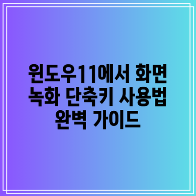 윈도우11에서 화면 녹화 단축키 사용법 완벽 가이드
