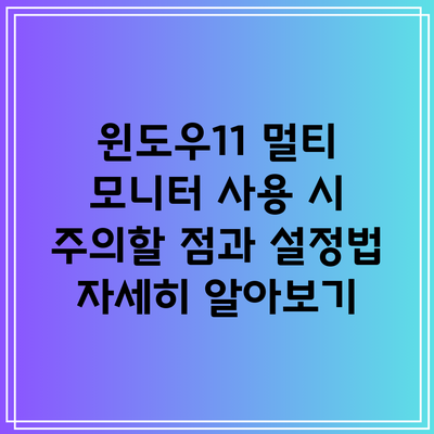 여러 대의 모니터를 사용하는 것은 작업의 효율성을 크게 높일 수 있답니다. 하지만 윈도우11에서 멀티 모니터를 설정할 때 주의해야 할 점들이 몇 가지 있어요. 잘못된 설정은 오히려 불편함을 초래할 수 있으니, 아래의 내용을 잘 읽어보세요.