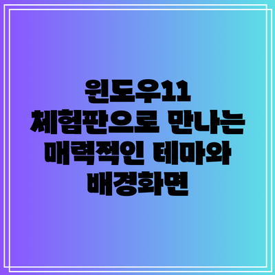 | 테마의 다양성 | 윈도우11 체험판에서 다양한 테마를 제공하여 개인의 스타일을 표현할 수 있어요. |