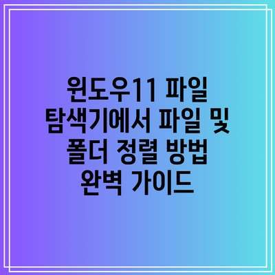 윈도우11 파일 탐색기에서 파일 및 폴더 정렬 방법 완벽 가이드
