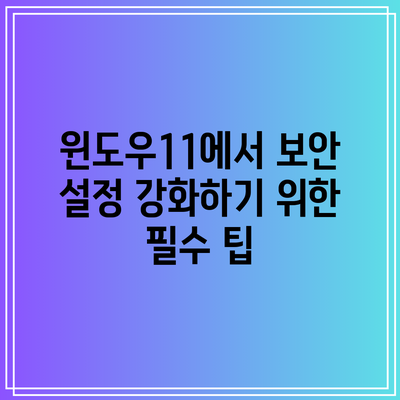 윈도우11에서 보안 설정 강화하기 위한 필수 팁
