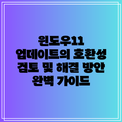 윈도우11 업데이트 후 발생할 수 있는 호환성 문제는 미리 체크하고, 필요한 조치를 취함으로써 해결할 수 있습니다. 아래의 내용을 요약하며 강조해 보리니, 꼭 확인해 보세요.