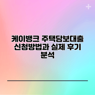 주택담보대출은 많은 사람들이 꿈꾸는 집을 사기 위한 중요한 금융 수단입니다. 특히, 케이뱅크는 온라인 뱅킹 덕분에 간편하게 대출을 신청할 수 있는 장점이 있습니다. 이번 포스트에서는 케이뱅크 주택담보대출 신청방법과 실제 후기에 대해 깊이 있게 알아보겠습니다.