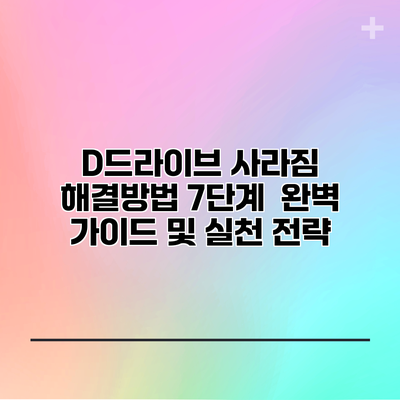 D드라이브 사라짐 해결방법 7단계: 완벽 가이드 및 실천 전략
