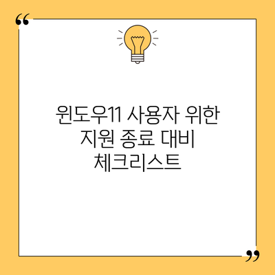 윈도우11의 지원 종료는 사용자에게 여러 가지 중요한 영향을 미칠 수 있기에, 이에 대한 철저한 준비가 필요해요. 아래는 지원 종료에 대비하기 위해 반드시 점검해야 할 필수 항목들을 정리한 표입니다.