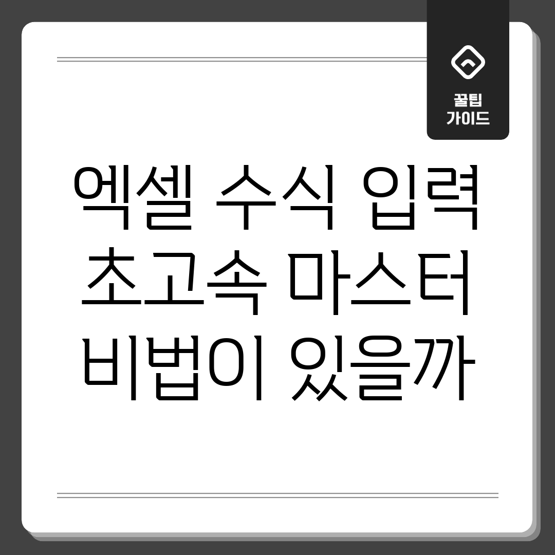 Q: 엑셀 수식 입력 속도를 눈에 띄게 향상시키는 가장 효과적인 방법은 무엇인가요?