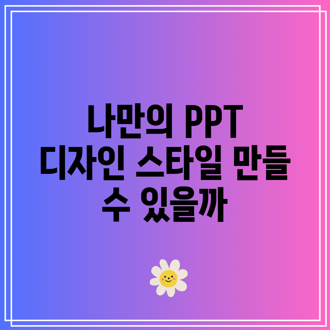 나만의 PPT 디자인 스타일, 지금 바로 시작해보세요! 작은 변화가 큰 차이를 만들어낼 겁니다.