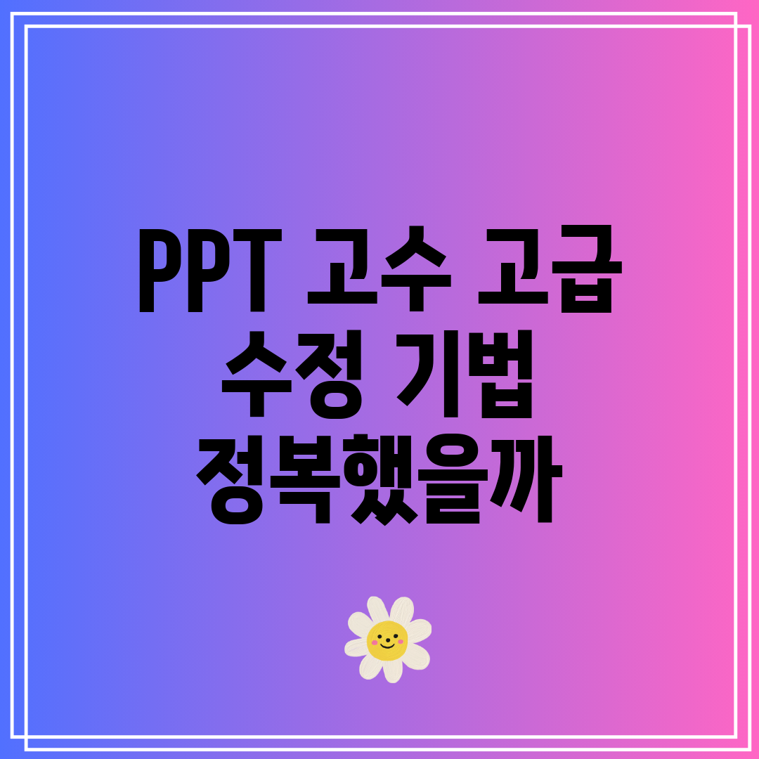 제가 ‘고급 PPT 수정 기법 완벽 정복’을 위해 사용했던 방법은 다음과 같아요: