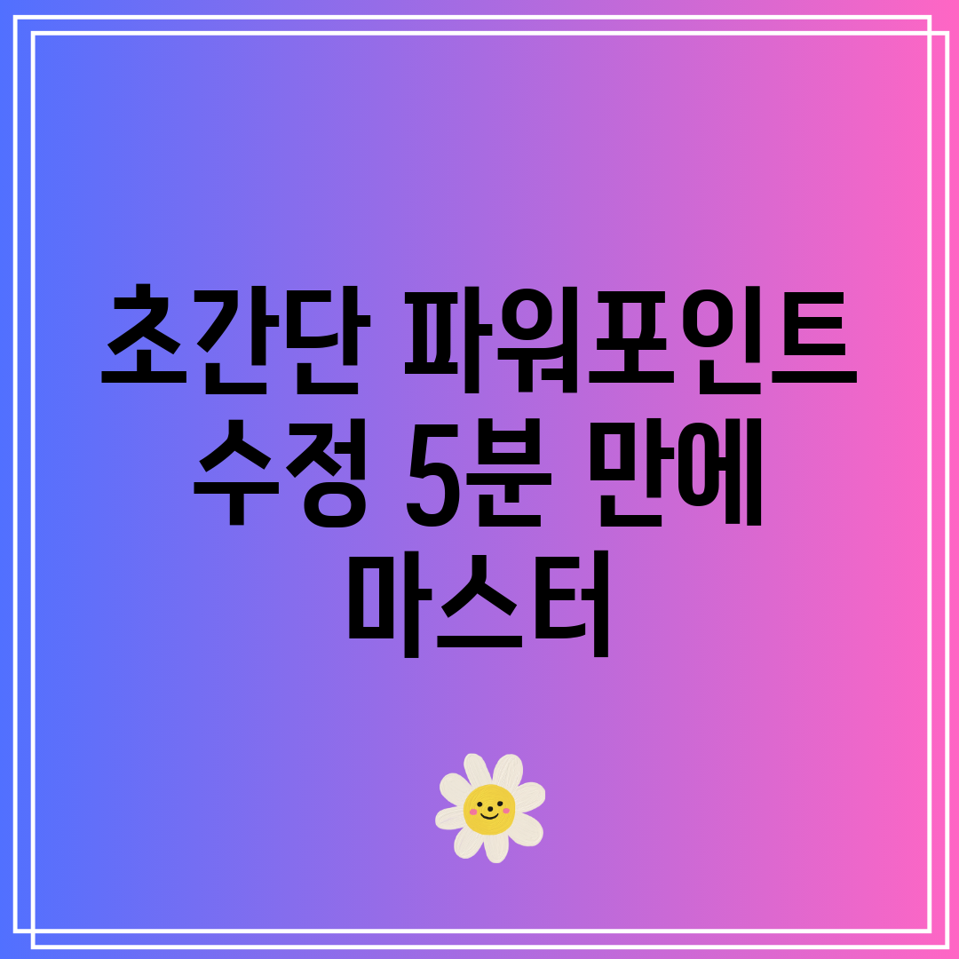 파워포인트 작업 속도, 답답하셨죠? 이 가이드에서는 5분 만에 파워포인트 수정하는 “초간단 파워포인트 수정 방법”을 통해 10배 빠른 편집 기술을 익히도록 돕겠습니다. 핵심은 효율적인 단축키 활용과 마스터 레이아웃 사용입니다!