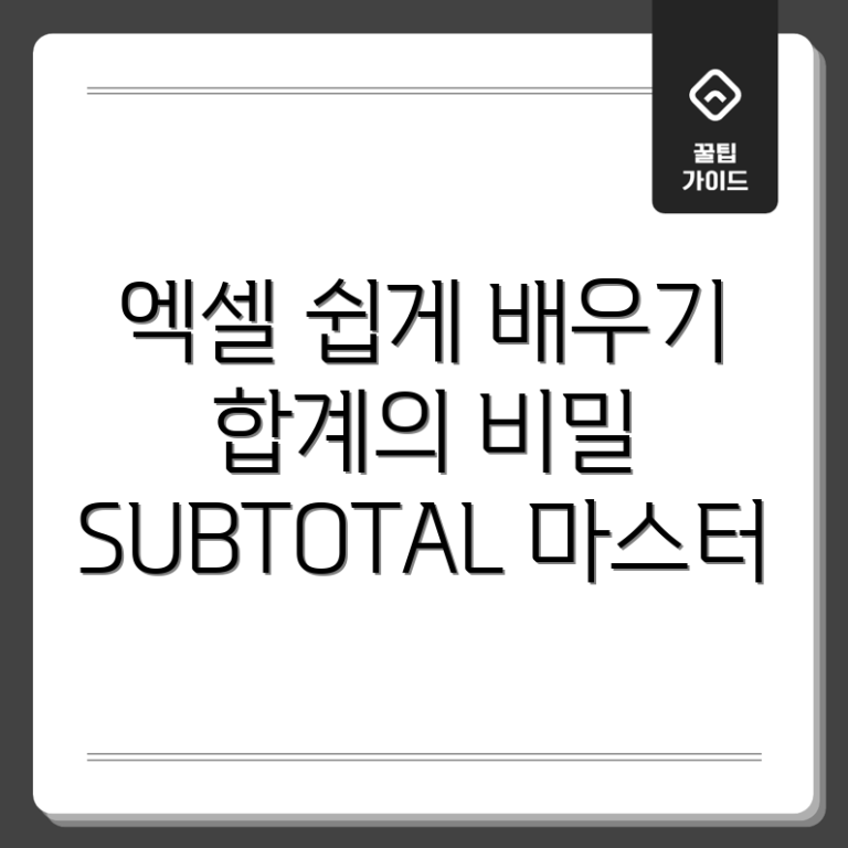 누구나 쉽게 배우는 엑셀 합계: SUBTOTAL 함수 활용법